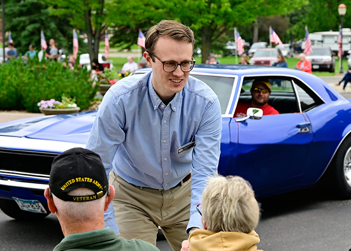 Sen. Jordan Rasmusson (R-Fergus Falls) attends the Stars and Stripes parade at the Fergus Falls Veterans Home on Friday, June 27.