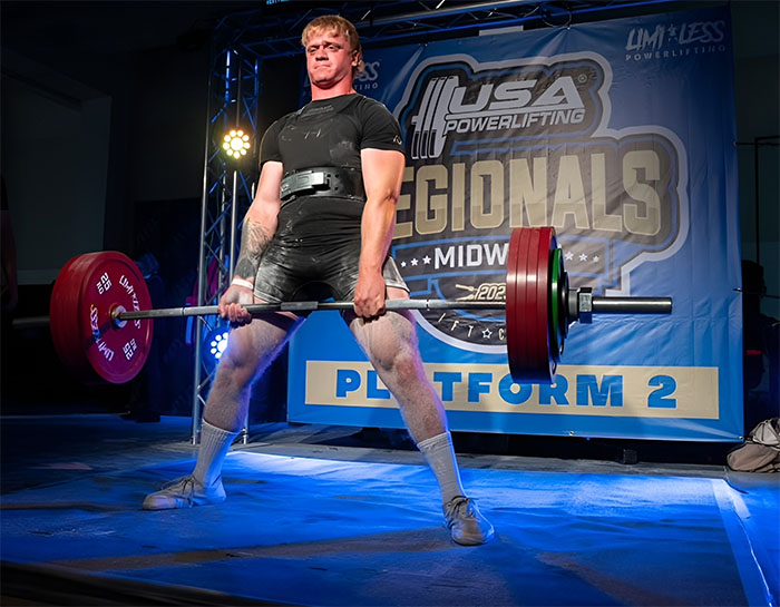 Dylan Selly performs the deadlift at the USA Powerlifting Midwest Regionals in Appleton, Wis.