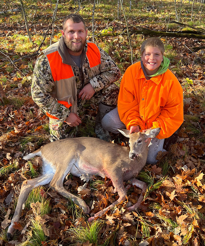 Kienna Ard, age 13, and Wesley Ard, age 11, pictured with his uncle Kyler Wegner, both got their deer during the open youth hunting season.