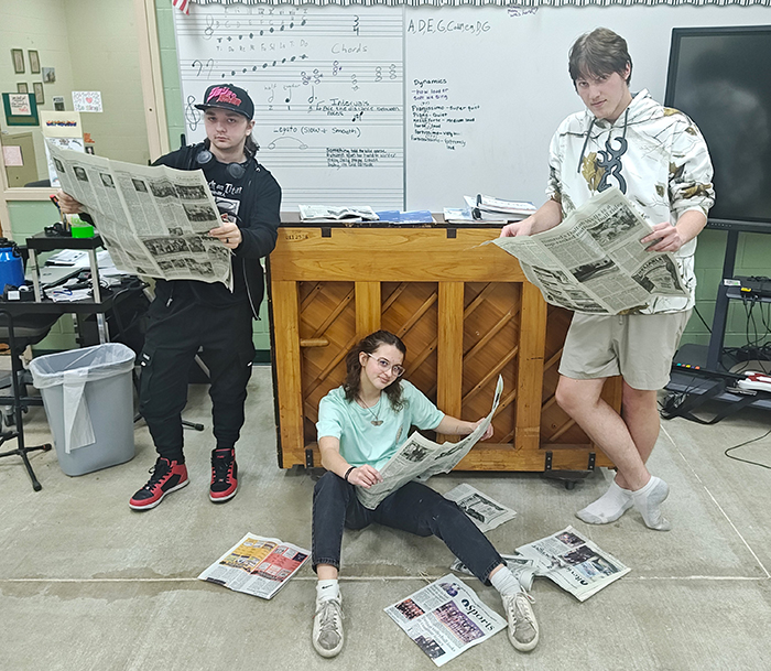 Junior Simon LaSart, Senior Emersyn Wake and Senior Joseph Bachleitner sat down Thursday, Oct. 31, to talk about their characters and a change of pace in the selection of this year’s musical “Newsies, Jr.”