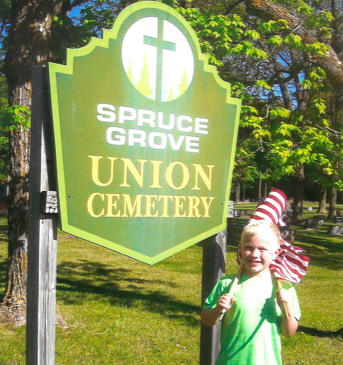 That is exactly what Aliva, Benjamin and Owen Buhr did. They placed flags on each deceased veteran’s grave at Spruce Grove Union Cemetery this past Memorial Day. They learned of the different wars that the veterans were in by the markers on their graves.
