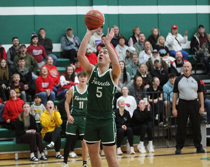 The Hornets were led offensively by Adam Vigen who scored 14 points and chipped in with five assists and five steals, as well as Noah Mekalson who scored 10 points. Ayden Grossman scored five points, Conner Erickson and Ben Reierson each scored four, while Paul Sharp and Dawson Lyman rounded out the scoring with two points apiece.