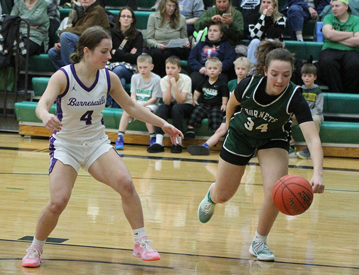 In a rematch of their regular season opener on Friday, Nov. 21, the Frazee Hornets once again overpowered the Barnesville Trojans as they came away with a 57-34 win on Tuesday night. The game was a bit lower scoring than the first time around when the Hornets defeated the Trojans by a score of 66-42.